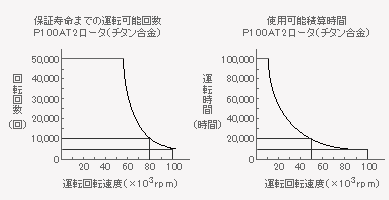 (1)ローターの最高回転速度の80%で使用した場合、使用可能な回数は2倍になります。