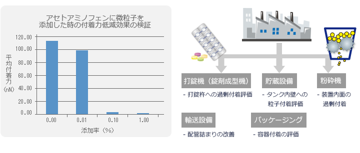 添加率0.1%の時に域値があり、平均付着力の大幅な変化がみられました。微粒子添加による付着力の低減効果が期待できます。